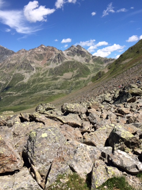 Now I want to back up a little to when I registered for this marathon. I checked the altitude for Davos and it was around 5000 ft above sea level. I had done marathons in Colorado, Wyoming, and a few others that were higher. The thing that I did not take into consideration that the marathon could go up from there. Up is what we did for about the next 4 hours. Switchback after switchback and the trail got rougher and narrower to the point that it you were not watching your feet all the time you would trip and go down for sure.